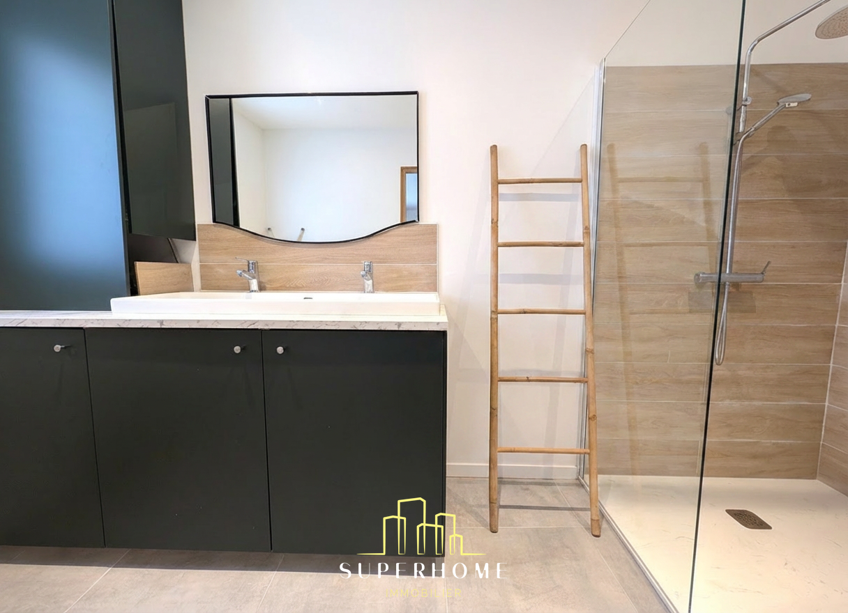 En effet, la piece de vie avec sa cuisine US, offre une luminosité remarquable et s' ouvre sur ce grand jardin entretenu. L'espace principal est complété par une suite parentale avec sa salle d'eau